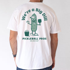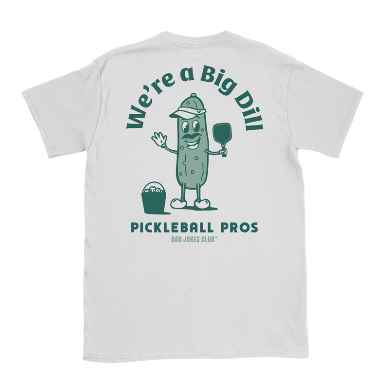 Introducing our latest Dad Jokes Club shirt: "Pickleball Pro" This playful design features a pickle ready to serve up some fun on the court, blending sports and humor in the best way possible. Perfect for pickleball enthusiasts and pun lovers alike, this shirt guarantees laughs both on and off the court. Wear it proudly and let everyone know you're a big dill when it comes to dad jokes.