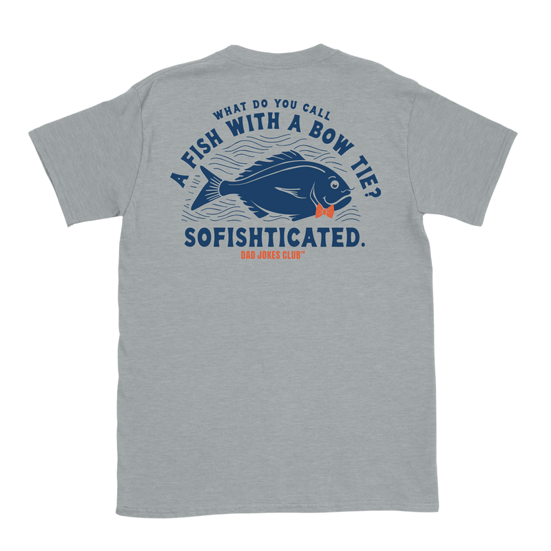 Get ready to reel in the laughs with our Dad Jokes Club shirt featuring a soFISHticated fish wearing a bow tie! This hilarious illustration is sure to make a splash and have everyone hooked on your sense of humor. Whether you're a master of dad jokes or just enjoy a good chuckle, this shirt is perfect for you. Made with top-quality materials for comfort and durability, it's ideal for casual wear or for adding a touch of whimsy to any outfit. Cast your line and catch this must-have shirt to join the fun at Dad Jokes Club today!