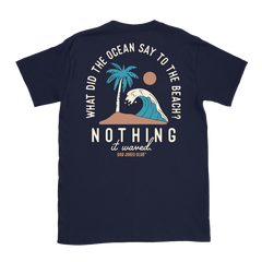Whether you’re standing on the sand, feeling the sea spray, or just cruising through a backyard barbecue, this shirt is your unofficial uniform for a good pun and a good tide. The “Wave” tee celebrates the endless pull of the ocean and the endless supply of dad jokes — because both are best when you’re poised, confident, and ready to drop the line.